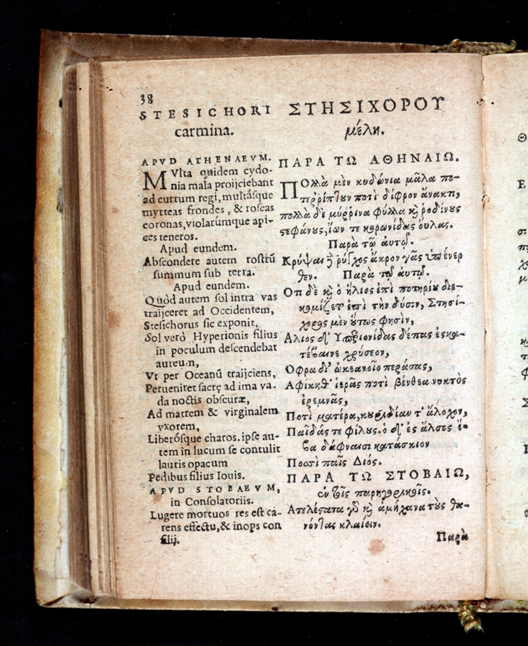 Títol: Pindari Olympia, Pythia, Nemea, Isthmia. Caeterorum octo lyricorum carmina, Alcaei, Sapphus, Stesichori, Ibyci, Anacreontis, Bacchylidis, Simonidis, Alcmanis. Nonnulla etiam aliorum. Omnia graecè & latinè. Pindari interpretatio noua est eaque ad uerbum. Caeteri partim ad uerbum, partim carmine sunt redditi.