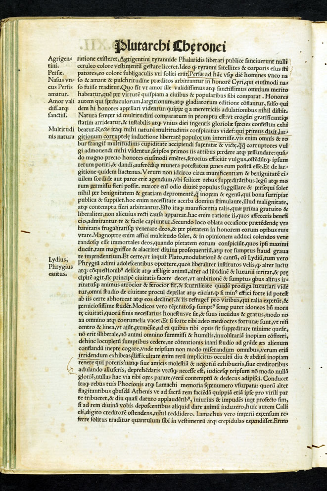 Títol: Opuscula Plutarchi Cheronei sedulo undequaque collecta et diligente recognita ac in unam faciem bellatule coimpressa, quorum ante praefationem patebit & numerus & series praemissoque amplissimo & rerum & uerborum indice.
