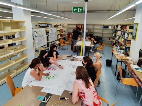 El taller ha estat format per professors de la Facultat d’Informació i Mitjans Audiovisuals, tant de CAV com de GIDD, alumnes dels dos graus, un representant de la Unitat de Projectes del CRAI i un del CRAI Biblioteca. El taller l'ha conduit l’Anna Ripoll, d’Intuïtiva.