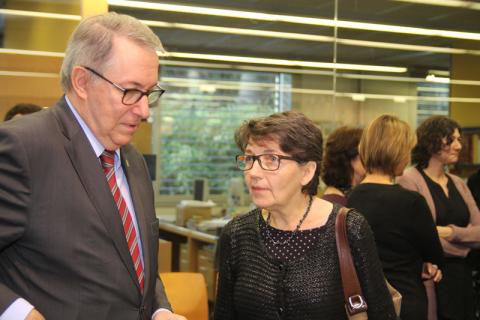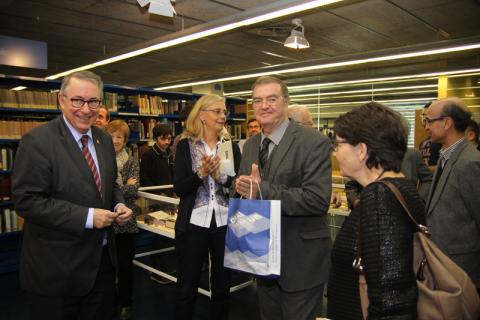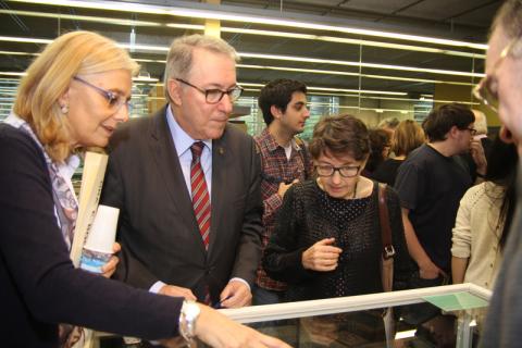 En acabar l'acte, els assistents es van traslladar a la Biblioteca on el Rector va inaugurar in situ l'exposició i hi va haver un petit refrigeri.