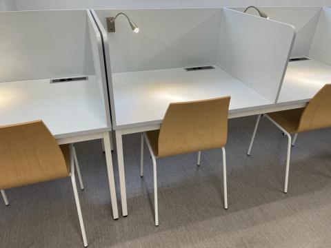 Després de comprovar l'alta demanda i l'ús que tenen els cubicles de la planta baixa, s'ha redistribuït l'espai per tal d'introduir més mobiliari d'ús individual. Així doncs, a més d'aquests 10 cubicles nous, s'han reubicat els set que teníem a l'espai on s'ha construït la tercera sala de treball.